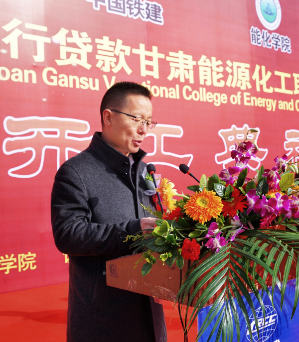 院党委副书记、院长吴兰州同志在仪式上致辞。他代表学院对一直以来关心、支持学院发展的上级领导、广大师生及社会各界朋友表示衷心的感谢!吴院长谈到,二期工程的建成,将进一步优化学院办学条件,有效解决我院当前教室、学生宿舍、食堂等基础设施不足的状况,并为学院未来的发展奠定坚实基础。学院将以习近平新时代中国特色社会主义思想为指导,认真学习贯彻党的十九大和全国教育大会精神,以本次工程奠基为新的起点,全面落实立德树人根本任务,扎实做好教育教学、招生就业、管理服务等各项工作,努力开创学院更加美好的明天,为服务兰州新区、甘肃乃至全国能源化工及新兴产业的发展做出新的贡献。项目施工、监理单位代表致辞。